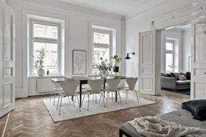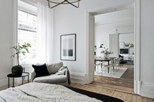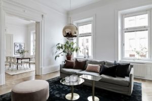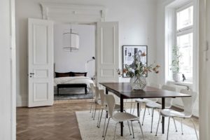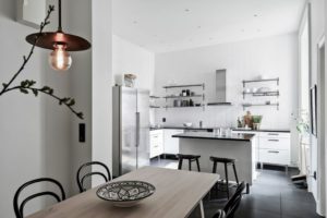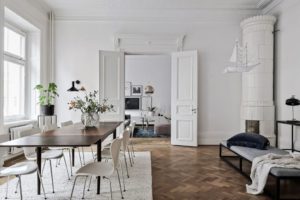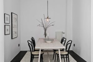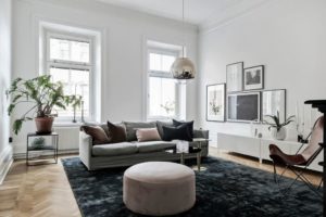 Predstavljam vam prostran građanski stan visokih stropova obojen u bazičnu bijelu, upotpunjen detaljima u nekoliko pastelnih nijansi, te crnom kao dominantnom i kontrastnom. Udobnost i toplina dobivene su teksturama, tkaninama, izloženim arhitektonskim detaljima interijera, pomno biranim namještajem i naravno osobnim predmetima vlasnika. Veliki prostor u ovom slučaju ne djeluje prazno nego pročišćeno i skladno, a s druge strane lišen je svega nepotrebnog.