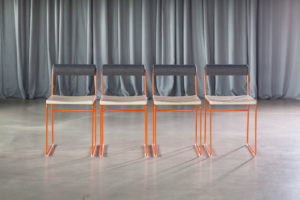 “Naslon čini tapecirana spužva jednostavnog cilindričnog oblika, a sjedište je oblikovano od punog drva jasena. Dizajn je inspiriran cjelokupnim konceptom uređenja restorana – «kreativni laboratorij», kojem su istraživanje, znatiželja i razigranost glavne karakteristike. Zato su šarene cijevi istaknuti element interijera restorana, a one čine i bazu konstrukcije stolice.”