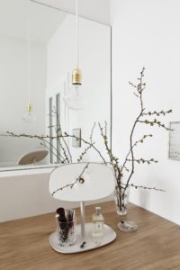 Dnevnim boravkom dominira sofa Redondo, dizajn Patricie Urquiole za Moroso, te kvadratni multifunkcionalni bijeli stolići Trey danskog studija HAY. Od klasika u interijeru izdvojio bih još i stolnu lampu Cestita dizajnera Miguel Milá iz 1931. godine, Flip Mirror iz Normann Copenhagena, Last Stool Maxa Lamba za Hem, vrlo popularnu visilicu IC Lights Michaela Anastassiadesa za FLOS te Saarinen blagovaonski stol, Knollov klasik iz 1957. godine.