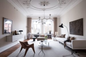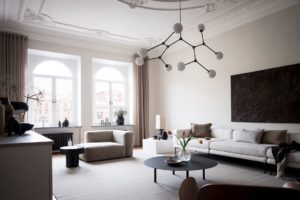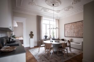 Stan je to visokih stropova, bogatih arhitektonskim detaljima i velikim prozorima koji osiguravaju prirodnu svjetlost kojom stan obiluje. Prodan je preko agencije za posredovanje nekretninama – Bjurfors, a styling interijera potpisuje lokalni studio Nouvel Interiör kojeg vode Elli Roshandel i Therese Eriksson.