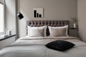 Spavaćom sobom protežu se nešto topliji bež tonovi i iako je prostorno vrlo male kvadrature, ona izgleda vrlo prostrano i prozračno.