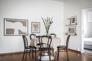 Na Göteborškom tržištu nekretnina pojavio se još jedan vrlo inspirativan stan neutralnih tonova obogaćen detaljima u tamnosmeđoj boji za koju najnoviji trendovi kažu da je nova crna.