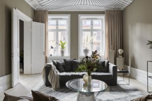 Stilistica Katia Thøger pozabavila se detaljima pa tako u dnevnom boravku možemo vidjeti dvije različite sofe koje u poprilično ozbiljan interijer unose dozu razigranosti.