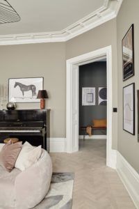 Paleta nježnih pastelnih i puderastih tonova s tek pokojim detaljem u crnoj, čini ovaj interijer zaista predivnim.