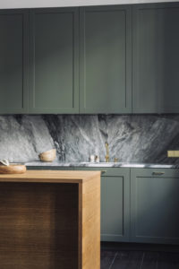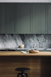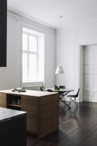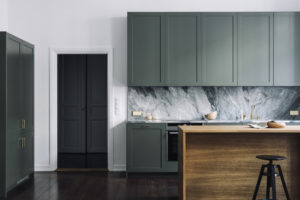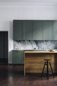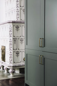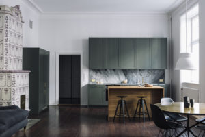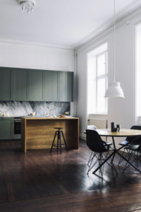 Često na Pinterestu naiđem na fotografije ove divne kuhinje pa sam odlučio malo istražiti tko je zaslužan za dizajn. Iako nisam sklon bojama, ova nijansa prljavo zelene savršeno kontrira teksturi hrasta i oraha i baš mi odgovara. Fronte su vrlo klasičnih linija, bez nekih pretjeranih detalja, s običnim malo širim rubnim okvirom. Na zidnim elementima izuzete su ručkice pa je za pretpostaviti da se otvaraju na potisak ili je izvedeno neko skriveno udubljenje u fronti koje pomaže pri otvaranju, dok kod donjih elemenata nalazimo decentne ručke boje starog zlata. Vrlo jednostavan, minimalistički dizajn kuhinje u kojoj su skriveni aparati, a u prvi plan stavljeni prirodni materijali poput kamena na radnoj plohi i drva bogate teksture na kuhinjskom otoku. U prostoriji visokog stropa savršeno se uklapa i jednostavni blagovaonski stol upotpunjen crnim Eamesovim stolcima te originalni kamin koji u ovom modernom minimalističkom interijeru predstavlja duh nekih minulih vremena. Dizajn kuhinje potpisuje švedski studio Asplund, dok je za fotografije zaslužan Jesper Florbrant.