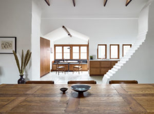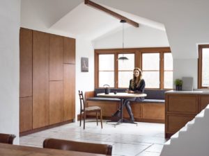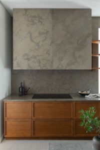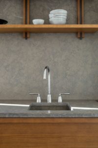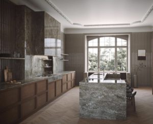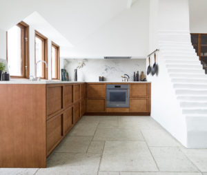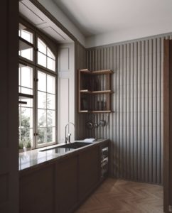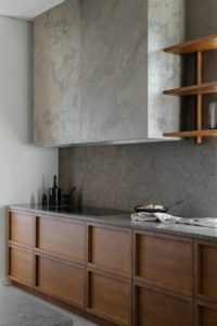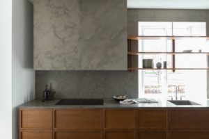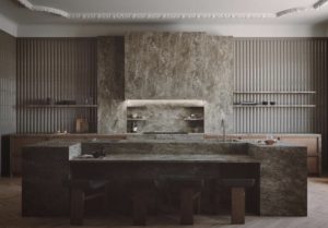 Dizajnerica je koncept opisala kao spoj starog viktorijanskog dvorca s jednostavnošću Japana. Kuhinja je rustikalna, a opet suvremena i elegantna, izrađena u prirodnim materijalima kao što su drvo i kamen.