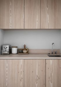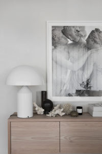 Ured je vrlo spokojan, prevladava paleta neutralnih boja s naglaskom na crnim detaljima. Sigurno ste zamjetili drvene fronte na ormarićima, oni su dio posebne suradnje koju je Lottin studio imao s Picky Livingom koji proizvodi fronte za IKEA ormare, a koje su izrađene od masivnog drva danske tvrtke Dinesen. Ured obiluje i brojnim komadima s potpisom zvučnih imena poput sofe švedske tvrtke Gärsnäs, Crown armchair štokholmskog branda Maasproduction, pravih ikona poput stolne lampe Atollo koju je 1977. godine dizajnirao Vico Magistretti za Oluce, ili Flosove Snoopy lampe koju je 1967. dizajnirao Achille e Pier Giacomo Castiglioni.
