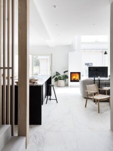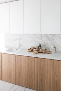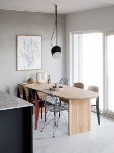 Vrlo svijetli prostori s puno tekstura, kombinacije svjetlijeg i tamnog drva te detalji koji podižu cijeli prostor na višu razinu.