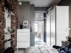 Stanom prevladavaju pastelni tonovi i neutralne nijanse sive, a spavaćom sobom dominira cigleni zid koji ovom minimalističkom prostoru daje dozu reljefnosti i industrijskog dizajna. Zanimljivo je da stan nema niti četrdeset kvadrata, a izgleda puno veći nego što zaista jest. Kuhinja rađena po mjeri s elementima od poda do stropa izvrsno je rješenje kojim se dizajnerica poslužila i odličan primjer za svaki stan s manjom kvadraturom. Veliki prozori izvor su prirodnog svjetla, a u kombinaciji sa svjetlijim nijansama i samo nužnim komadima namještaja, daju ovome interijeru prozračnost i ugodnu atmosferu doma.