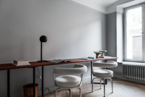 Vrlo svijetao i prozračan prostor uređen minimalistički i sa stilom. Prvo što sam uočio na fotografijama je ovaj predivan primjerak vintage naslonjača Vigga Boesena, koji zaista obožavam, a od dizajnerskih komada koje još možemo vidjeti su Dandy Ottoman švedskog brenda Massproductions, PK22 naslonjače Poula Kjærholma za Fritz Hansen, Sander stakleni stolić također iz Massproductiona, rasvjetna tijela Sergea Mouillea itd.