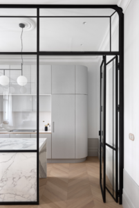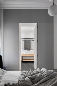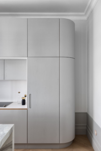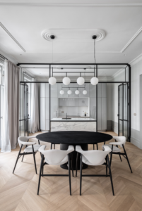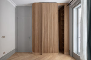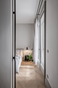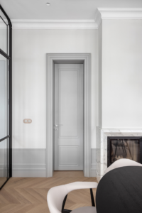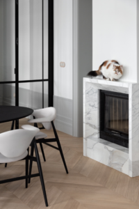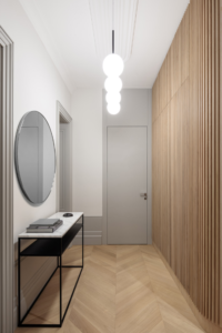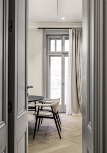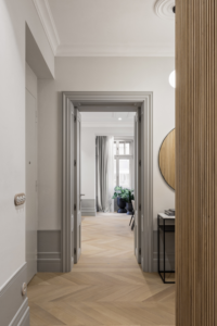 Dozu romantike i duh nekih prošlih vremena u prostor unose zidni paneli, prirodno visoki stropovi te parket slagan u francuski vez koji je danas vrlo popularan i koji i osobno jako volim.