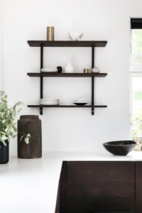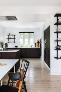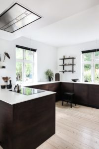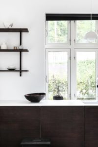 Njihov vlastiti dom u mnogočemu je bio njihovo igralište. Kuhinja u obliku slova U bila je njihov prvi prototip gotova proizvoda, što ih i je inspiriralo za pokretanje Ask og Eng-a. Kuhinja ima jednostavne fronte i ladice od bambusova drva u tamnim nijansama s elegantnim bijelim kompozitnim radnim plohama. Kine je zadržala zidove bez gornjih ormarića te odabrala izložiti samo najdraže komade na zidnim policama, također prototipom iz svoje kolekcije.