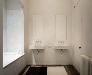 Sam interijer mješavina je starih i suvremenih arhitektonskih elemenata po kojima je Van Duysen upravo i poznat. Njegov rad cijenjen je diljem svijeta i o njemu sam već pisao na blogu, no ono što mene osobno jako veseli u njegovom radu je upotreba prirodnih materijala i organskih oblika na jedan potpuno drugačiji način kojim suvremeni interijeri dobivaju sasvim drugu dimenziju. Osnovna paleta korištena u projektu ne uključuje boje, no to prostor ne čini dosadnim jer naglasak je na teksturi i jednostavnosti.