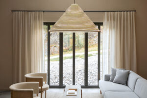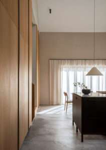 Komadi namještaja i pokućstva jednostavnih su silueta i pomno birani kako bi naglasili prostranost, ali i otvorenost same kuće, dok su boje zadržane minimalnim, bež i sivkasti tonovi.