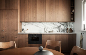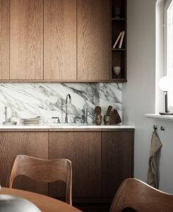 Stube između katova pomaknute su, a tamo gdje su stajale prijašnje dizajnirana je nova kuhinja. Izbor za dizajn pao je na brend Nordiska Kök.