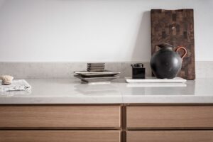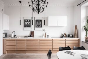 Ono što me na prvu privuklo interijeru je kuhinja koja zaista dominira prostorom. Fronte su izrađene od punog drva i izgledaju predivno. Jednostavnih linija i bez gornjih elemenata kuhinja djeluje pomalo artistički i savršeno je uklopljena u interijer. Dizajn potpisuje brend Multiform.