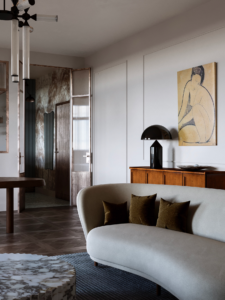 Tekstura drva, mramor, oble linije i organski oblici namještaja, zagasiti tonovi… Tako svježe i suvremeno, a opet s nekom vintage crtom Art déco-a, baš poput samog imena i interijer vuče u neka davnija vremena pariškog chic-a. Više slika donosim u nastavku, a detalje o projektu možete pročitati na spomenutom blogu.